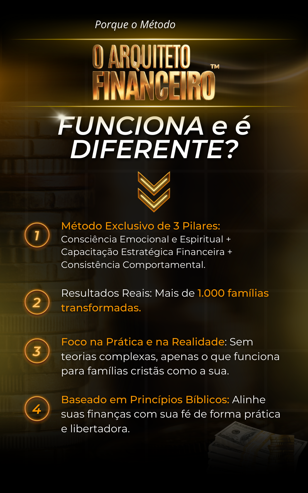 COM CERTEZA! Este método foi desenhado justamente para quem está SEM CONTROLE FINANCEIRO e precisa de um caminho claro e prático para sair dessa situação, com base na fé e em estratégias que funcionam.