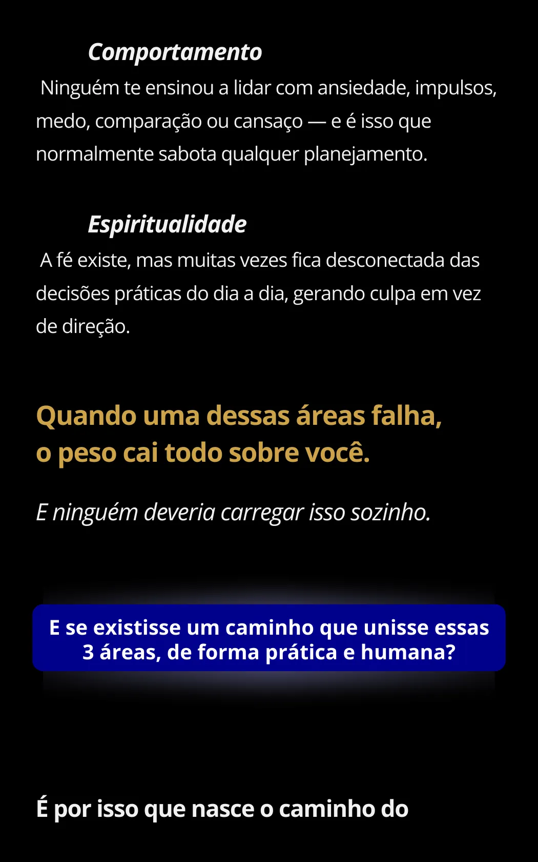 Aqui você aprende o necessário para organizar sua vida financeira, mas o foco está em como sustentar decisões no dia a dia, não em fórmulas complexas que não se mantêm.